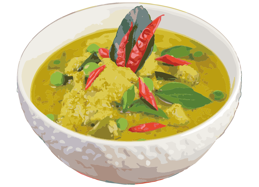 ココナッツミルクの甘みと青唐辛子の辛みが絶妙なタイの名物カレー。