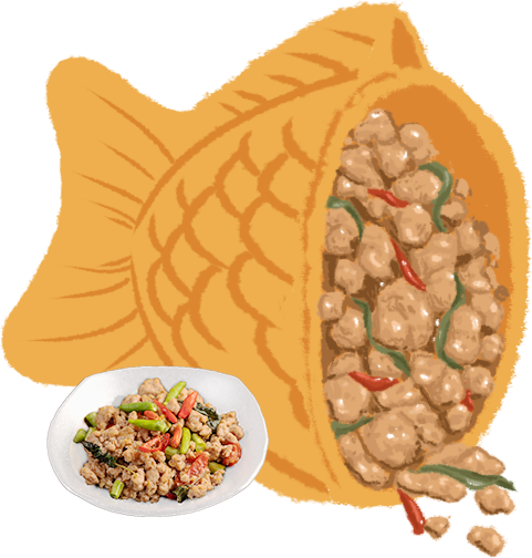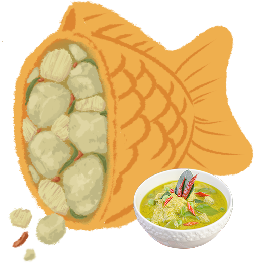 ThaiYaki(タイ焼き)は、タイの伝統的なスイーツや料理の味をそのままたい焼きの形で楽しめる